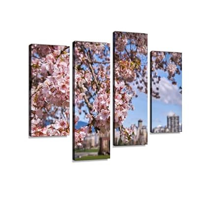 Vancouver Cherry Blossoms Canvas Wall Art Hanging Paintings Modern Artwork Abstract Picture Prints Home Decoration Gift Unique Designed Framed 4 Panel